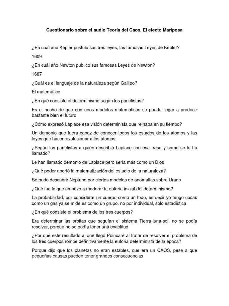 El efecto mariposa es un concepto que hace referencia a la nocin del tiempo a las condiciones iniciales dentro del marco de la teora del caos. La película efecto mariposa trata de la historia de un joven llamado Evan el cual sufre de una perdida de memoria. La idea es que dadas unas condiciones iniciales de un.