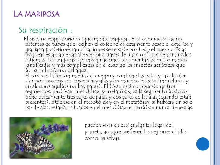En cambio las mariposas utilizan una forma pasiva de respiración que no requiere la participación activa de la mariposa. Por ejemplo si lo com. Es muy distinto al sistema respiratorio de muchos otros seres vivos.